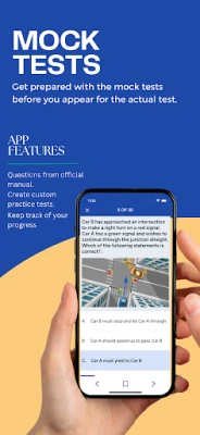 The app includes a practice module that allows to get familiar with questions that fall under different categories like Traffic Rules, Road Signs and Rules of Safe driving. It also keeps track of the progress you have made in each category. It contains questions from following categories: