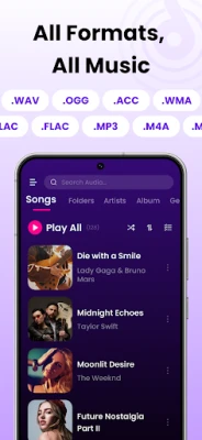 High-quality sound: Play music offline with HiFi sound, enjoy listening to music with music lyrics in this free MP3 player.