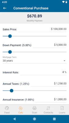 The calculations provided by the Point Me Home Mobile App are useful in giving you an idea of what homeownership might mean for you. However, please be sure to contact your Point Loan Officer for a customized solution tailored to your specific financial situation, needs, and goals. Your Loan Officer can also assist you with any questions you have about your loan and the loan approval process.